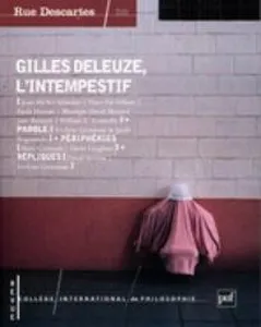 Gilles Deleuze, l’intempestif n° 59, 2008/1 - pagesQu'est-ce qu'une une pensée intempestive ? (De Deleuze à Lynch)Par Évelyne Grossman, Paola MarratiDeleuze, la transcendance et le sloganPar Jean-Michel SalanskisCartographies du dehorsPar Peter Pál PelbartLa nouveauté de la viePar Paola MarratiAgencements deleuziens, dispositifs foucaldiensPar Monique David-MénardMatérialismes métalliquesPar Jane BennettGilles Deleuze : le philosophe comme voyantPar William E. ConnollyDeleuze lecteur d'Artaud – Artaud lecteur de DeleuzePar Évelyne Grossman, Jacob RogozinskiDeleuze et la comédie : petite forme et grande santéPar Marc CerisueloL'impossible pensée. Deleuze et la question de la bêtisePar Dario GiuglianoFrançois Dosse, gillesdeleuzefélixguattari. Biographie croisée (La Découverte, 2007, 643 p.)Dork Zabunyan Voir, parler, penser au risque du cinéma (Presses Sorbonne Nouvelle, 2006, 327 p.)Félix Guattari et Suely Rolnik Micropolitiques [1986], (traduit du portugais-Brésil-par Renaud Barbaras, Les Empêcheurs de penser en rond/Le Seuil, 2007, 492 p.)Gérard Noiriel À quoi sert « l’identité nationale » ? (Éditions Agone, collection « Passé & Présent », Marseille, 2007, 154 p.)